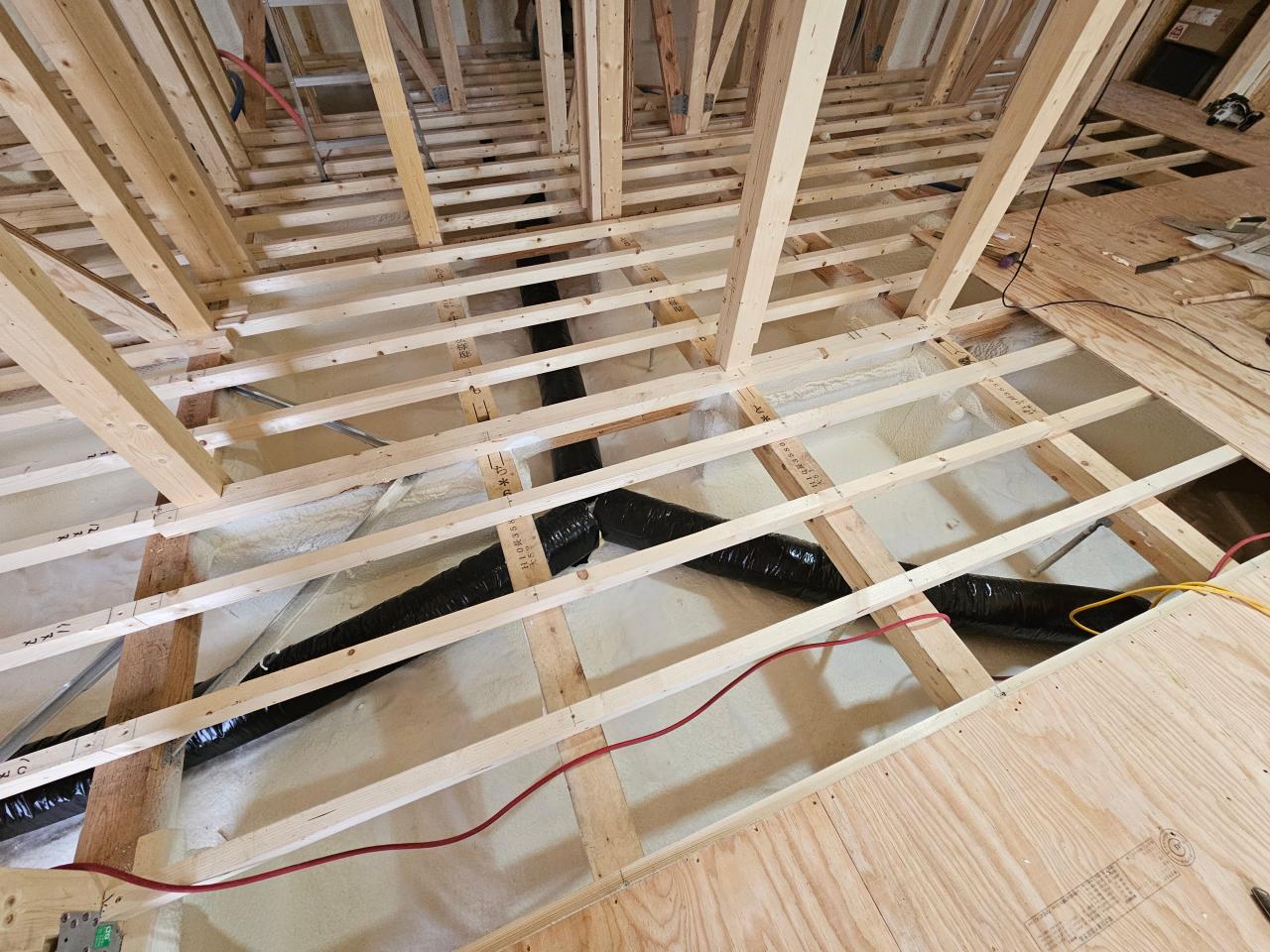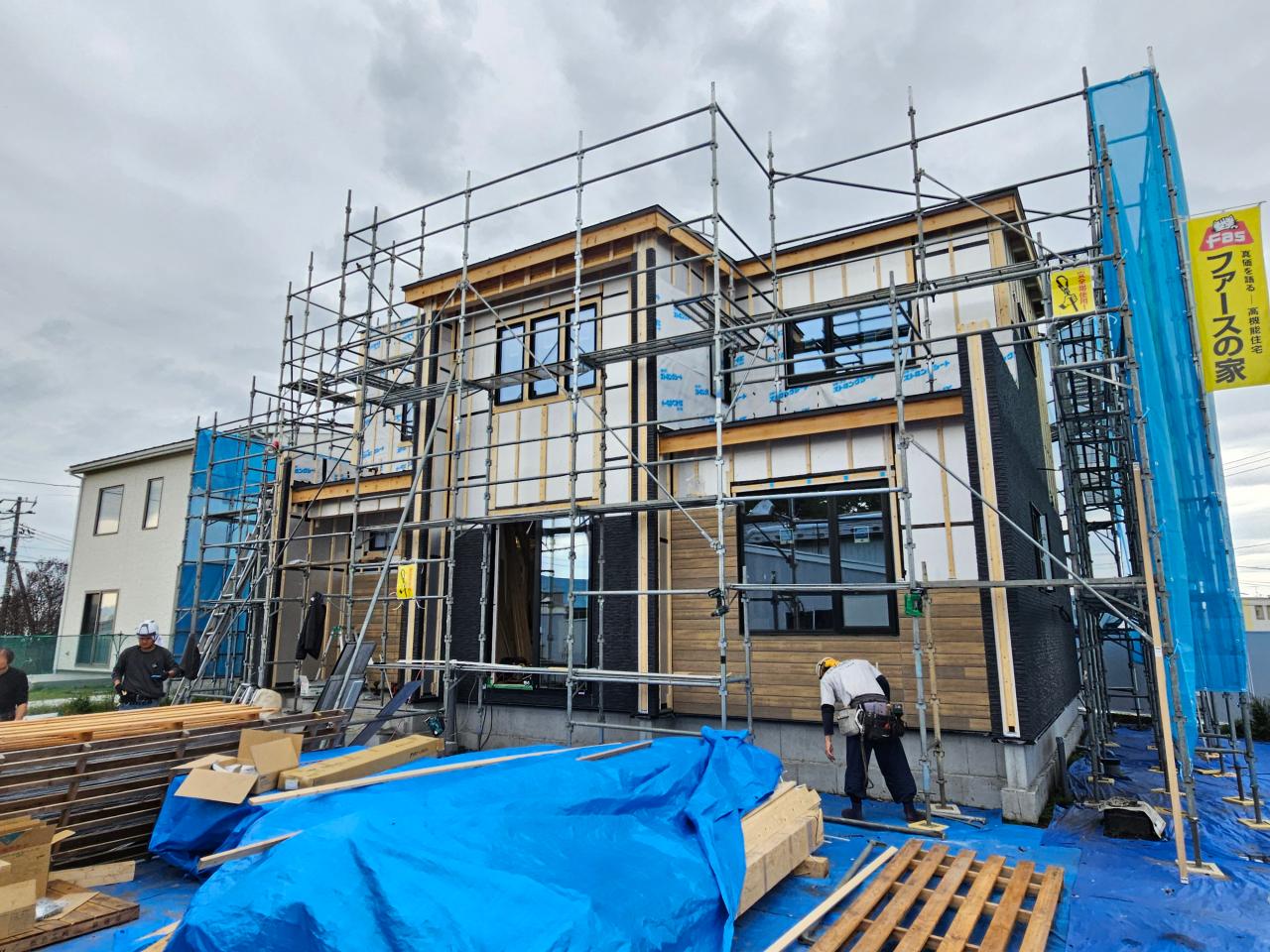 外壁貼りが始まり、屋外の作業も本格的に進行中です。